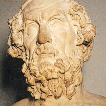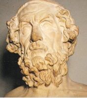 Poeta griego. Admirado, imitado y citado por todos los poetas, filósofos y artistas griegos que le siguieron, es el poeta por antonomasia de la literatura clásica, a pesar de lo cual su figura aparece rodeada del más profundo misterio, hasta el punto de que su propia existencia histórica ha sido puesta en tela de juicio. Las más antiguas noticias sobre él sitúan su nacimiento en Quíos, aunque ya desde la Antigüedad fueron siete las ciudades que se disputaron ser su patria: Colofón, Cumas, Pilos Ítaca, Argos, Atenas, Esmirna y la ya mencionada Quíos. Para Simónides de Amorgos y Píndaro, sólo las dos últimas podían reclamar el honor de ser su cuna. Aunque son varias las vidas de Homero que han llegado hasta nosotros, su contenido, incluida la famosa ceguera del poeta, es legendario y novelesco. La más antigua, atribuida sin fundamento a Herodoto, data del siglo V a.C. En ella, Homero es presentado como el hijo de una huérfana seducida, de nombre Creteidas, que le dio a luz en Esmirna. Conocido como Melesígenes, pronto destacó por sus cualidades artísticas, iniciando una vida bohemia. Una enfermedad lo dejó ciego, y desde entonces pasó a llamarse Homero. La muerte, siempre según el seudo Herodoto, lo sorprendió en Íos, en el curso de un viaje a Atenas. Los problemas que plantea Homero cristalizaron a partir del siglo XVII en la llamada «cuestión homérica», iniciada por François Hédelin, abate de Aubignac, quien sostenía que los dos grandes poemas a él atribuidos, la “Iliada” y la “Odisea”, eran fruto del ensamblaje de obras de distinta procedencia, lo que explicaría las numerosas incongruencias que contienen. Sus tesis fueron seguidas por filólogos como Friedrich August Wolf. El debate entre los partidarios de la corriente analítica y los unitaristas, que defienden la paternidad homérica de los poemas, sigue en la actualidad abierto.