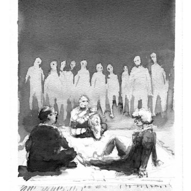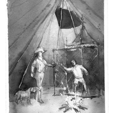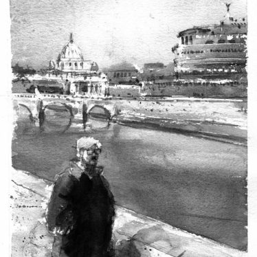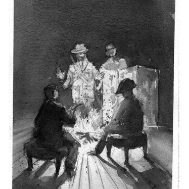 La acuarela, colocada en la cubierta de este número, firmada por mi padre, Evencio Cortina, ilustra el inicio de mi novela Deshielo y ascensión; o se podría decir mejor que la cita, si la entendemos autónomamente como un cuadro. Se refieren, se iluminan mutuamente pero en lenguajes extraños. Es más, el resto de sus acuarelas incluidas entre estas páginas ilustra relatos míos nunca publicados, cuentos y novelas que quizá nunca vean la luz. En cierto sentido, se podría decir que son citas de obras inexistentes. He aquí una curiosa metáfora del ensimismamiento al que tiende (en el fondo el destino) de toda obra estética: las intenciones y el origen de lo bello desaparecen cuando tratamos con lo estético como tal. Todo misterio aspira a lo autónomo, a lo individual cualitativo. Al mismo tiempo, la cita correcta contempla siempre el rigor de un hermanamiento; incluso a través de lenguajes puramente ajenos (música y prosa; música